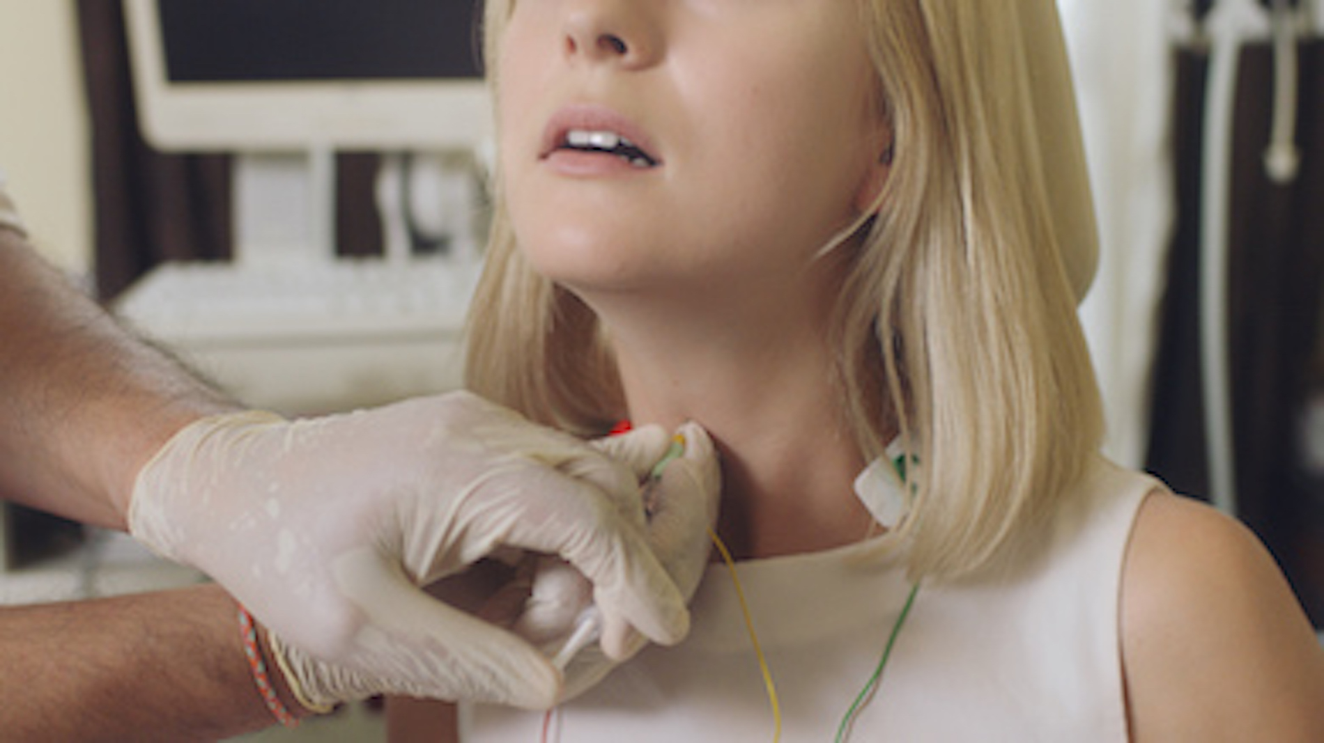 Marianna Simnett’s films are magic-realist morality tales which focus on threats to the health of human beings and our environment. Using surrealist techniques she blends real and imagined events, often performing as a protagonist undergoing significant physical duress; in The Needle and the Larynx (2016) her voice is surgically lowered with Botox whilst she recites a grim parable about gender, nature and artifice.