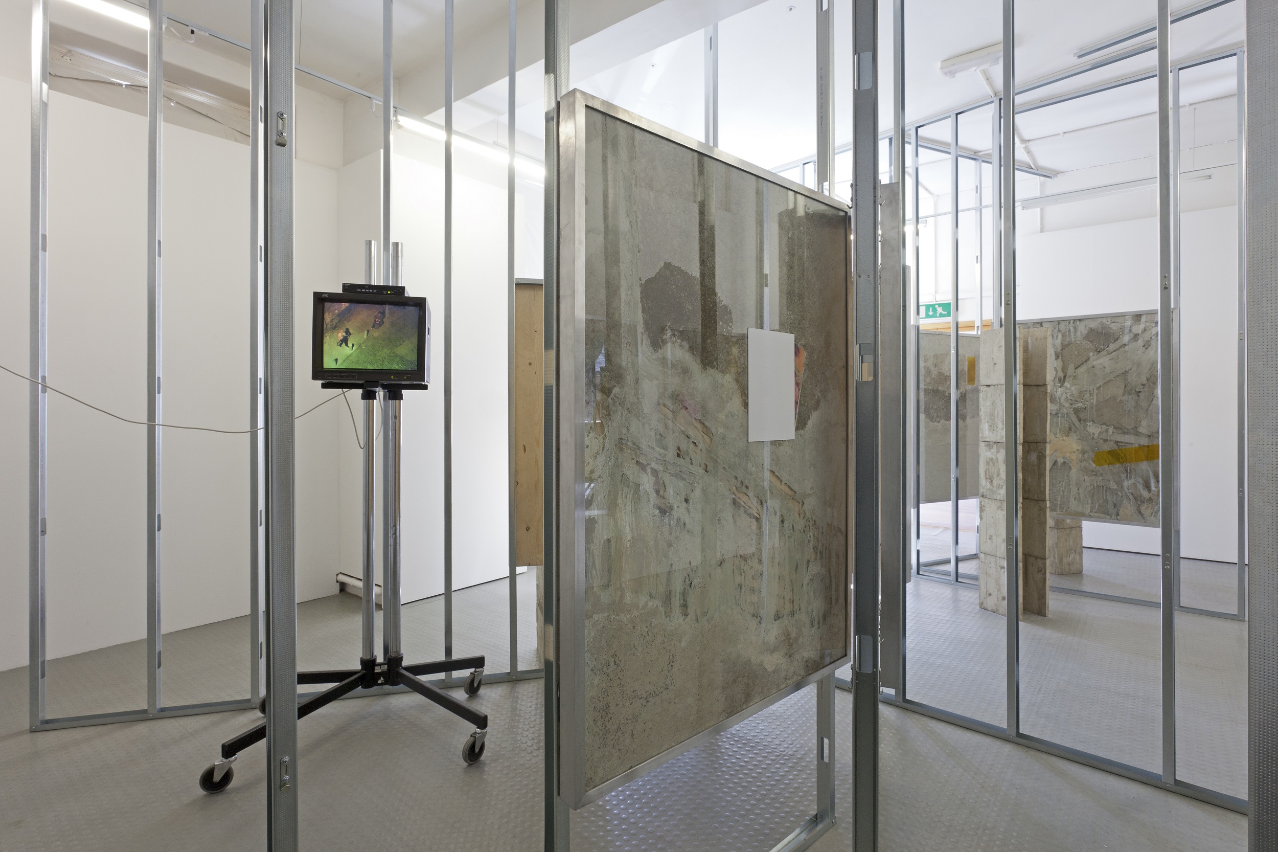 Carter had a touring show in 2015 Hotel Swallows The Workers that featured several pieces including Blueprint vs. Lived-In–a series of aluminium framed works, each containing concrete, timber, paint oil and other abject matter. Existing both as sculpture, drawing and possible blueprints for architecture, the frames suggest the potentially exponential expansion of Carter’s practice, an idea that often underpins his works through their examination of structural transience and overspill.