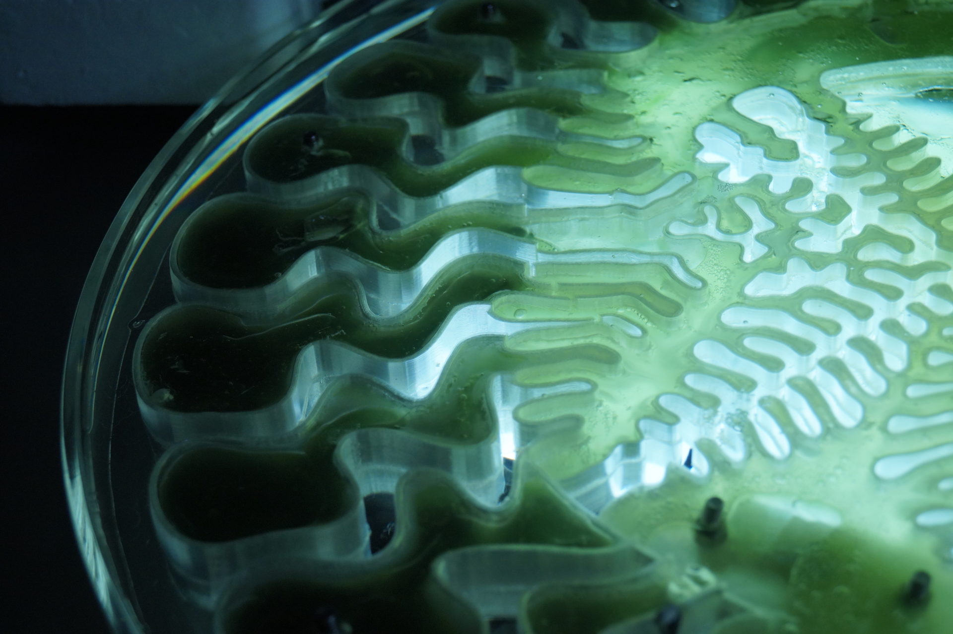 In gaining understanding of the composition, structure and processing of complex biological tissues and systems, Malik is able to explore large-scale 3D printing and robotic fabrication of these novel living materials. This research aims to create self sustaining biological scaffolds for architecture, with a range of energy-based uses such as the removal of pollutants from the environment, and the generation of energy through processes of photosynthesis.